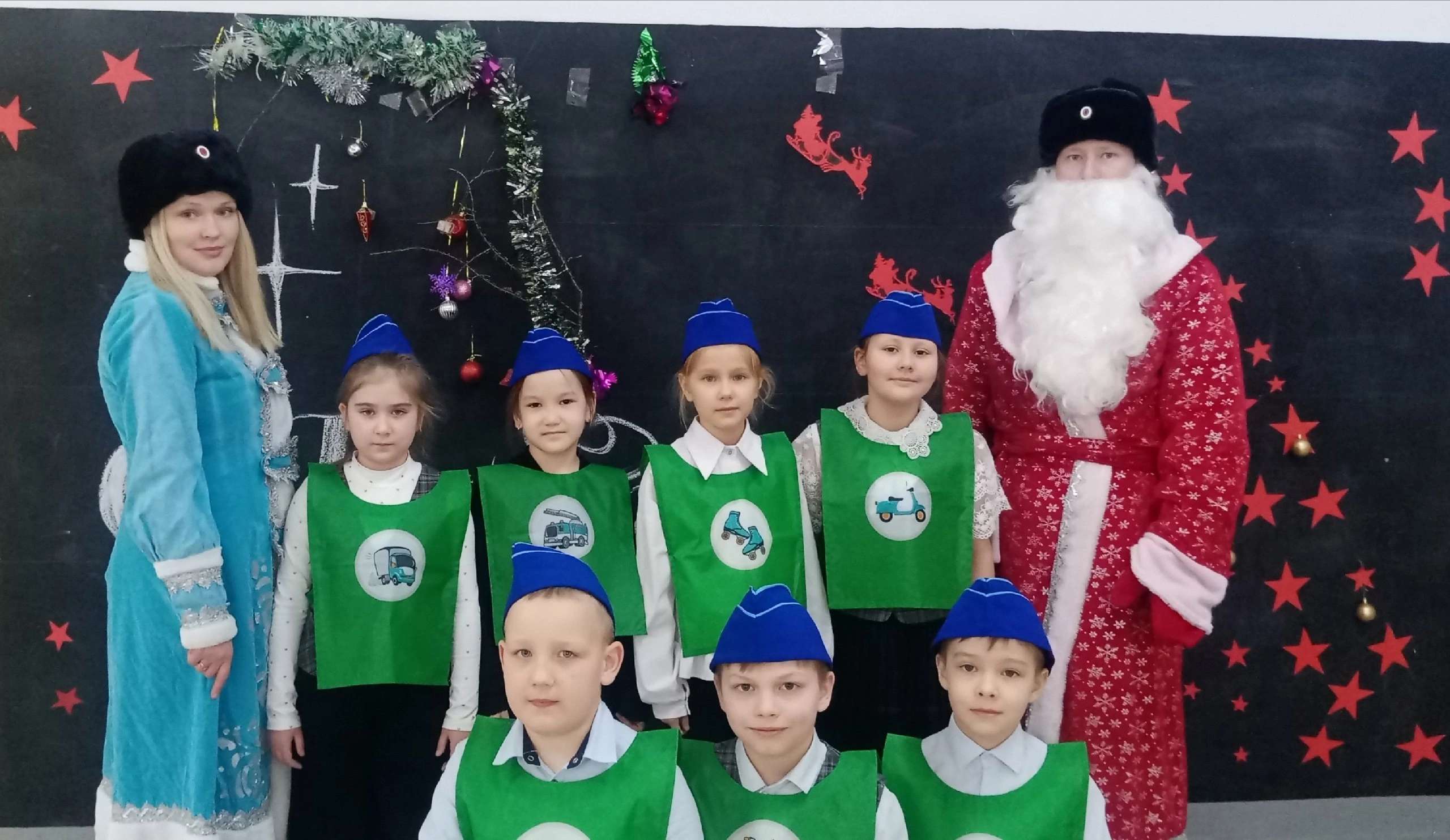 Госавтоинспекторы в костюмах персонажей Деда Мороза и Снегурочки при поддержке своих помощников напомнили юным пешеходам об обязательном и неукоснительном соблюдении правил дорожного движения. Гости призвали учеников вторых классов быть предельно внимательными на проезжей части и носить световозвращающие элементы на верхней одежде в условиях недостаточной видимости или в темное время суток, а также призвали детей к дорожной дисциплине и культуре пешехода в дорожной среде.