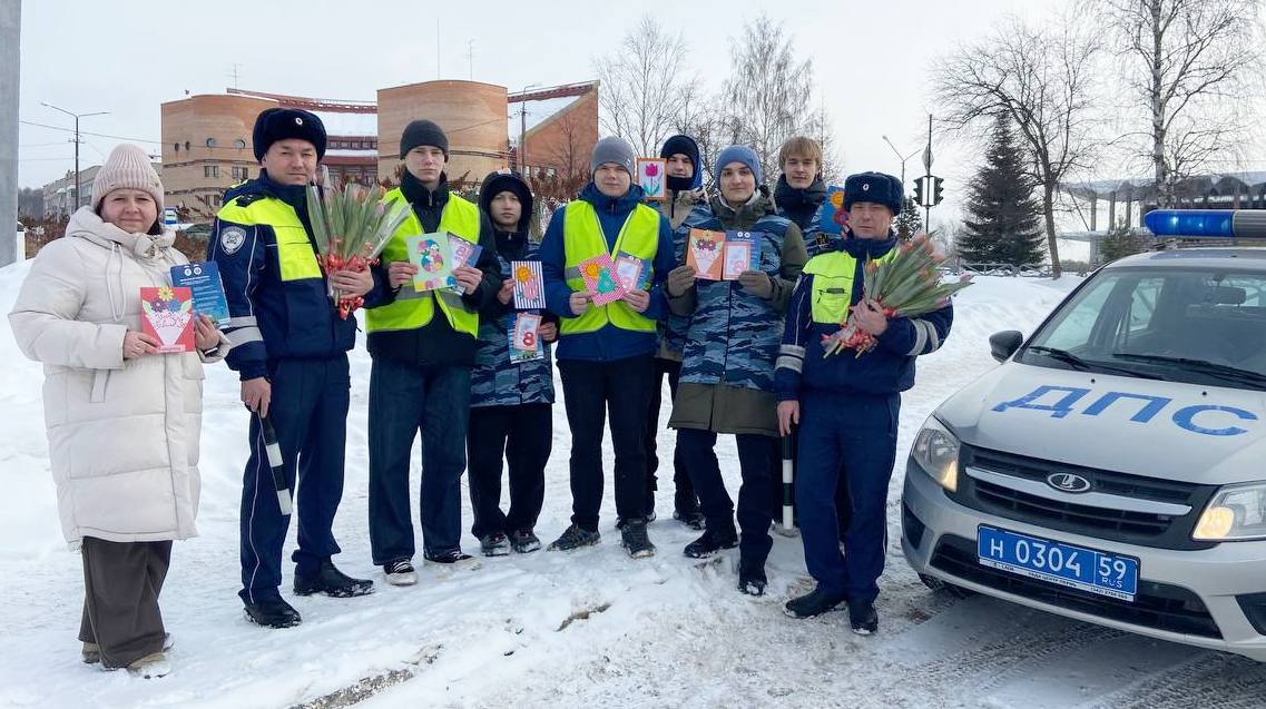 Стражи дороги в Лысьвенском муниципальном округе присоединились к акциям МВД России «Цветы для автоледи» и «8 Марта В каждый Дом»