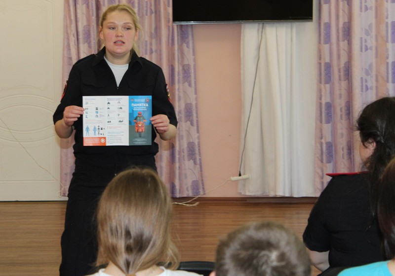 Инспектор по пропаганде безопасности дорожного движения отделения Госавтоинспекции лейтенант полиции Мария Мехрякова повторила с ребятами правила дорожного движения для пешеходов и велосипедистов, особое внимание уделила летним средствам передвижения: велосипедам, самокатам, роликам, электросамокатам.
