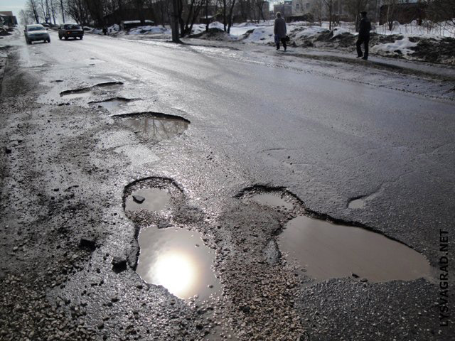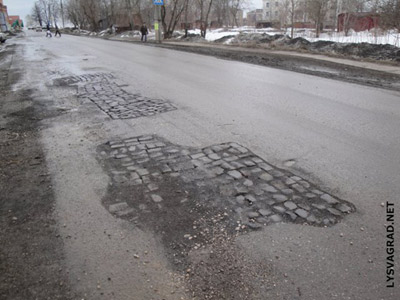 Самое интересное, что из года в год, ситуация не меняется, ямы появляются на одних и тех же местах, но в добавок к ним добавляются все новые и новые. Ярким примером бездорожья в Лысьве служит ул. Коммунаров и пр. Победы.