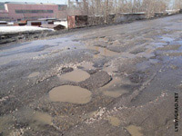 Самое интересное, в 2009 году производился ямочный ремонт, но заплаты почему-то благополучно «растворились», толи некачественный асфальт использовали для ремонта, толи технологии ремонта не соблюдены совсем.