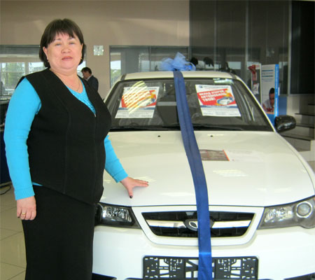 4 мая в прямом эфире на телеканале «Рифей» состоялся розыгрыш главного приза – автомобиля. По результатам розыгрыша лотереи новый автомобиль Daewoo Nexia выиграла жительница г. Лысьва Басалаева Елена Николаевна, работающая в ООО «Управление ЖКХ-Лысьва». Помимо оплаты стоимости автомобиля, из призового фонда Металлинвестбанк также оплатит за победителя розыгрыша, связанный с получением приза, налог на доходы физического лица.