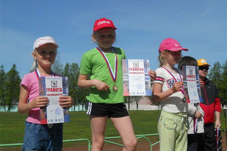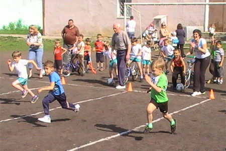 1 июня состоялись городские соревнования - комбинированная эстафета «Весёлые старты», посвященные Дню защиты детей. Соревнования проходили в зачет 4 этапа 1 спартакиады среди детских садов. 12 команд, более сотни юных спортсменов возглавляемых педагогами по физкультуре и поддерживаемыми папами и мамами собрались на гаревом поле, чтобы в очередной раз определить, какой детский сад самый спортивный. Нужно пройти эстафету, состоящую из этапов бега с мячом, на велосипеде, с мячом, на скакалке, с теннисной ракеткой и мячиком на ней, с клюшкой и шайбой, футбольным мячом и просто чистым бегом. Каждый этап 50 метров. После проведенных полуфинальных забегов определились финалисты. Это детские сады № 6,17,21,39. Упорный финальный забег всё расставил по своим местам. На последнем этапе гладкого бега спортсменка детского сада № 21 Шлыкова Александра на последних метрах обогнала соперницу из детского сада № 6 и финишировала первой. Однако, после финиша за нечистое прохождение одного из этапов эстафеты команда детского сада № 21, главным судьей соревнований Рычихиным А.В. приято решение и команда оштрафована на 3 сек. В результате первое место присуждено команде детского сада № 6, второе – детский сад № 21, третье – детский сад № 17.