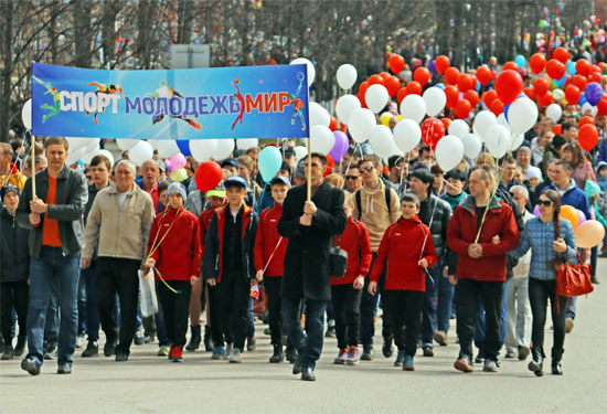 Лозунгов в этом году несли мало, и они были, наверное, самые мирные за последние годы. Кроме привычного «Мир. Труд. Май», по самой мирной улице Лысьвы проплыли «Спорт. Молодёжь. Мир», «Мир! Труд! ЛДПР!» и даже «Мир, труд, май – зарплату выше поднимай!».