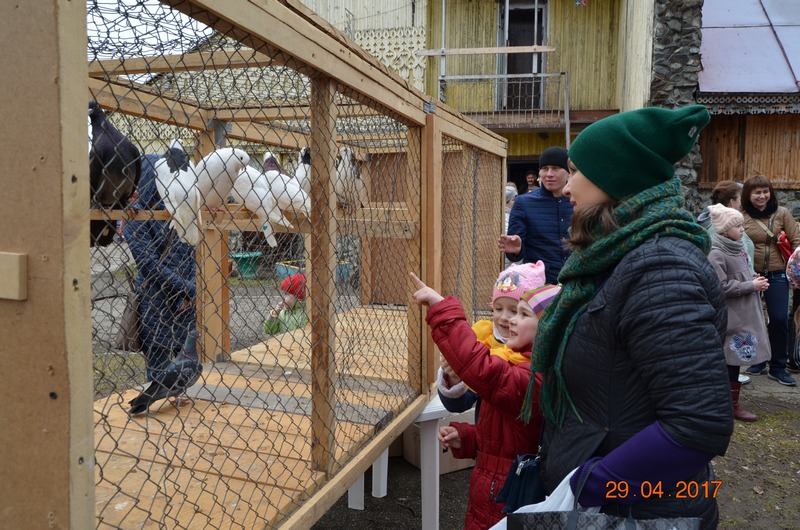 С большим интересом детишки и взрослые осматривали клетки с фазаном, цесарками, уткой, китайскими курицами и декоративными голубями, представленными на выставке «Птичий базар».