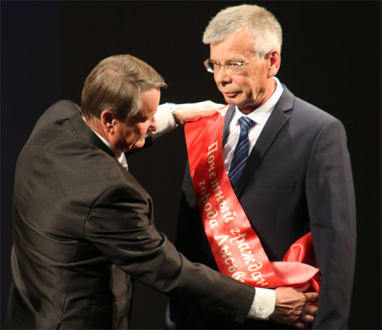 Почётными знаками «За заслуги перед городом Лысьва» награждены генеральный директор ООО «Управление «ЖКХ – Лысьва» Александр Чебыкин, председатель городской «Общественной палаты» Геннадий Сырчин. заслуженный артист РФ, актёр театра драмы им. А. Савина Александр Миронов.