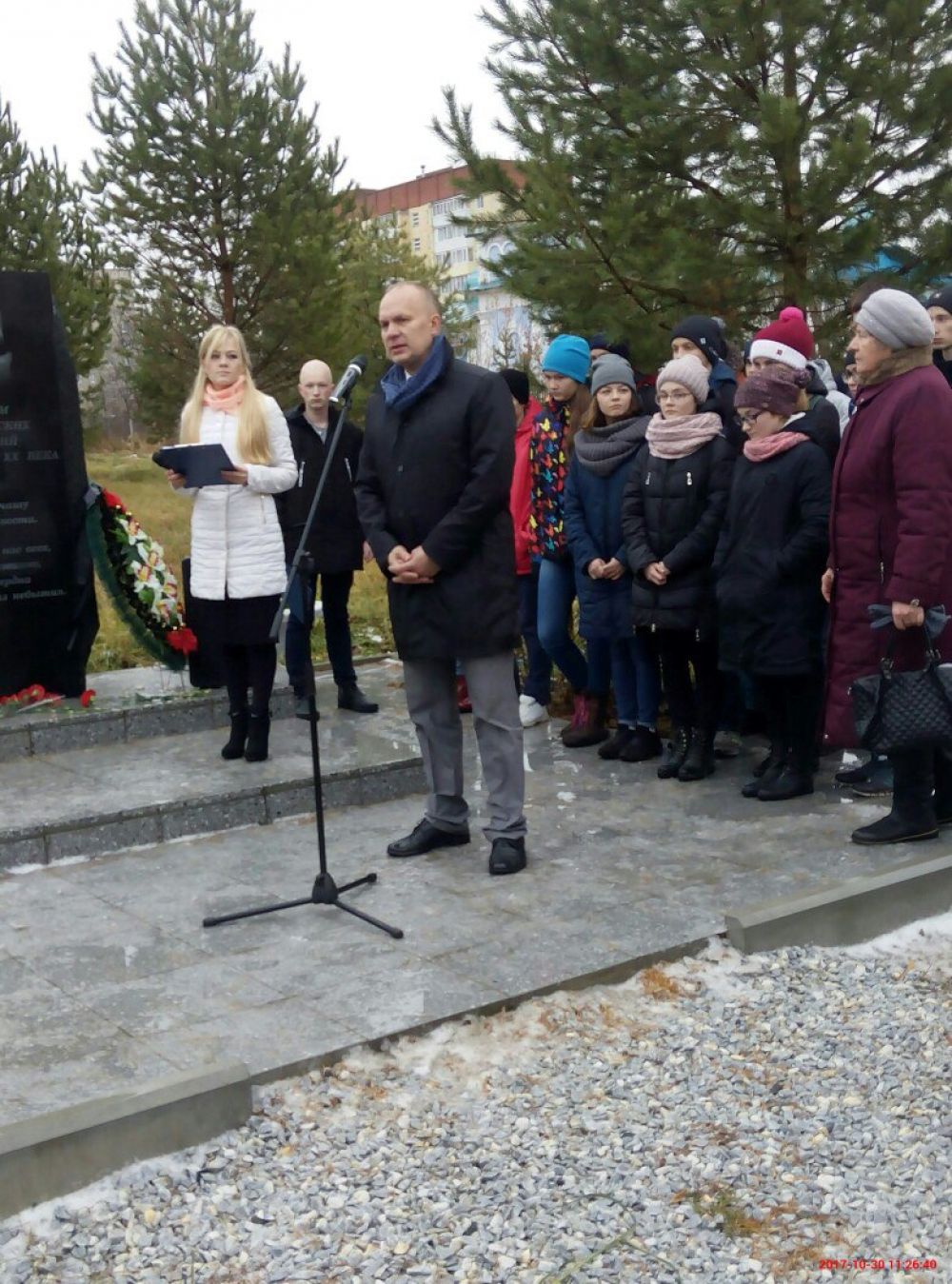 Заместитель главы администрации по социальным вопросам Виталий Ушаков отметил важность проведения подобных мероприятий: «Печальная памятная дата, но тем громче мы должны говорить о ней, вспоминая не самые почетные истории в жизни нашей страны, когда тысячи людей необоснованно были подвергнуты репрессиям, отправлены в ссылку и на спецпоселения, лишены жизни. И долг каждого поколения – извлечь уроки истории и чтить память тех, кто канул в конвейере репрессий».