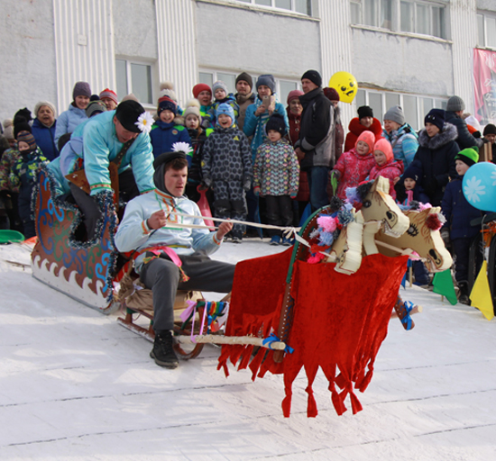 Команды составляли многолюдные (почти на всю площадь) хороводы, укладывали лысьвенцев на землю, сооружая гигантские блины, перетягивали канат. Но самым зрелищным оказался конкурс саней. Переодетые в скоморохов ТОСовцы катились на украшенных салазках с горы на потеху публике.
