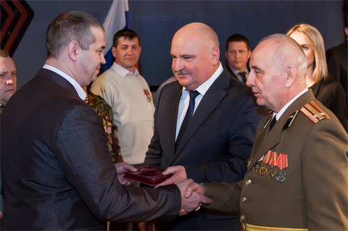 Награды из рук главы Лысьвы Александра Гончарова и военного комиссара города, подполковника Сергея Кашини получили более 100 человек: ветераны Великой Отечественной войны, ветераны войны в Афганистане и боевых действий на Северном Кавказе, ветераны Вооружённых сил и те, кто внёс значительный вклад в развитие патриотического движения в городе.