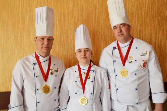 Компетентные судьи из Москвы отметили отличную подготовку команды, её профессиональный рост, высокий уровень подачи блюд и качество вкуса. Результат – диплом «Золотая медаль» в номинации «Национальная кухня». Помимо того, Денис, Андрей и Ольга включены в состав сборной России и смогут представлять нашу страну на международных конкурсах.