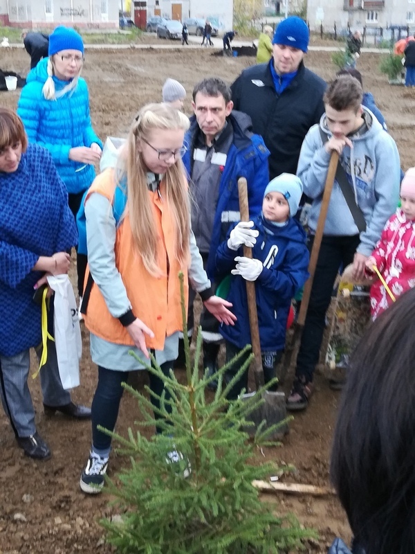 Вчера, 3 октября, семьи первоклассников высадили 270 деревьев ценных пород (ель, сосна, кедр, лиственница, береза, липа, яблоня). В посадке участвовало более 350 человек, многие пришли всей семьей с бабушками и дедушками, младшими братьями и сестрами.