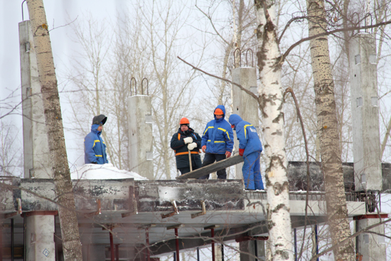 Ежедневно на стройке трудятся около 40 каменщиков, 28 монтажников и 23 бетонщика. На объекте заняты и лысьвенцы: в частности, кладут кирпич.