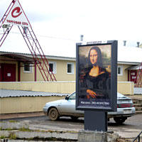 Для привлечения внимания и в качестве социальной рекламы на конструкциях размещены репродукции картин известных художников. Так, например, у торгового комплекса «С» можно увидеть «Мону Лизу» Леонардо да Винчи.