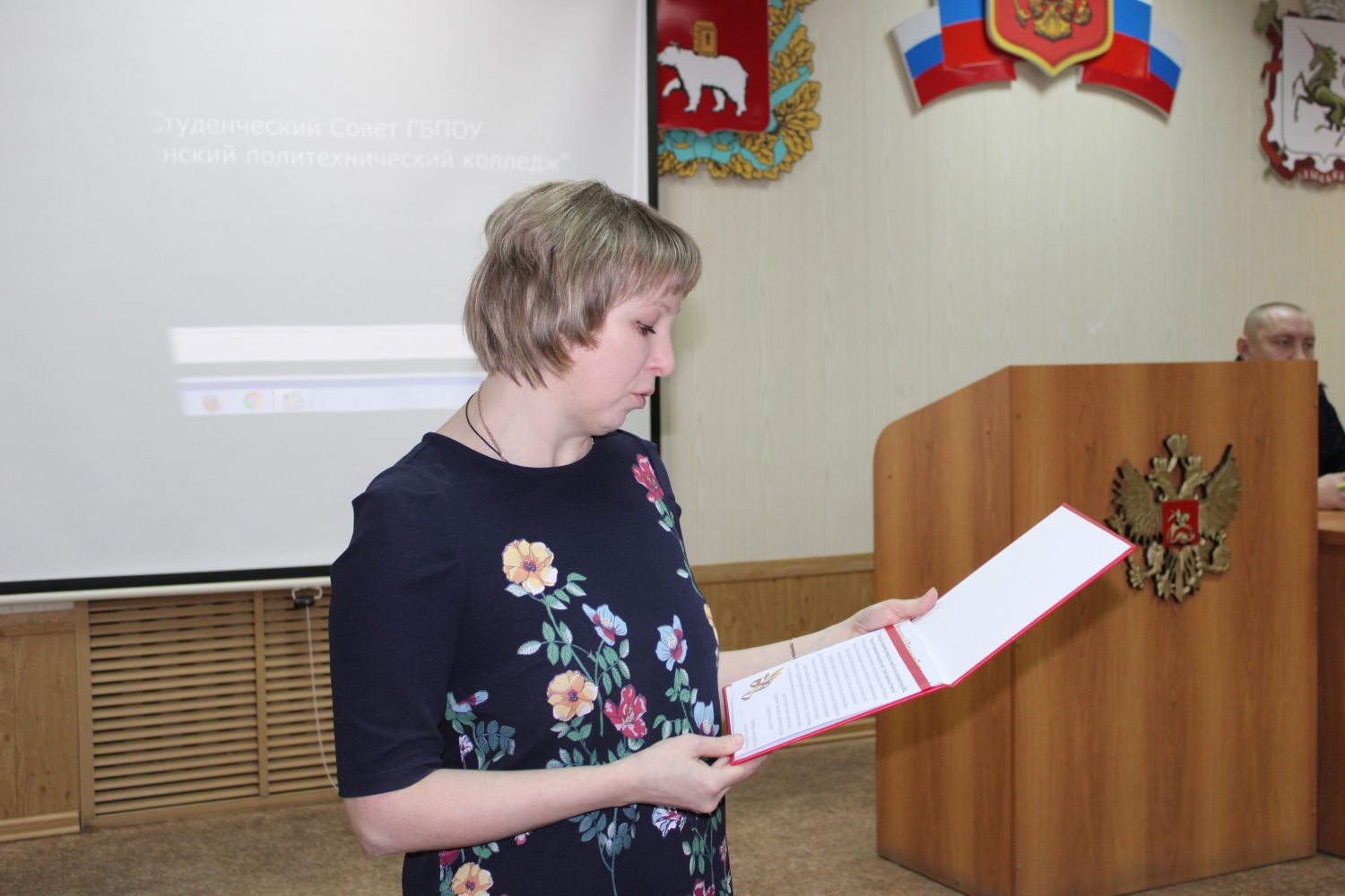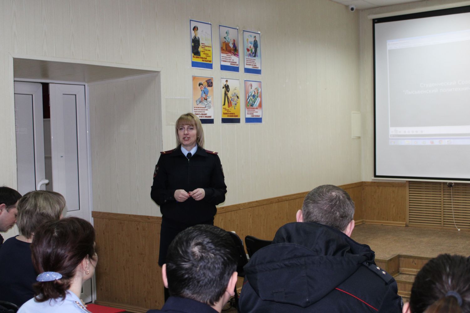 Вместе с преподавателями и студентами Лысьвенского политехнического колледжа общественники подготовили слайд – шоу «На службе Отечеству». В сопровождении начальника отдела по работе с личным составом ОМВД России по Лысьвенскому городскому округу, подполковником внутренней службы Ольгой Распоповой преподаватели и студенты посетили различные подразделения отдела внутренних дел, чтобы сделать фото на рабочих местах, о том, как несут службу полицейские. Творческая работа студентов и педагогов была наполнена уважением к стражам порядка, яркими тематическими слайдами, интересными рабочими моментами.