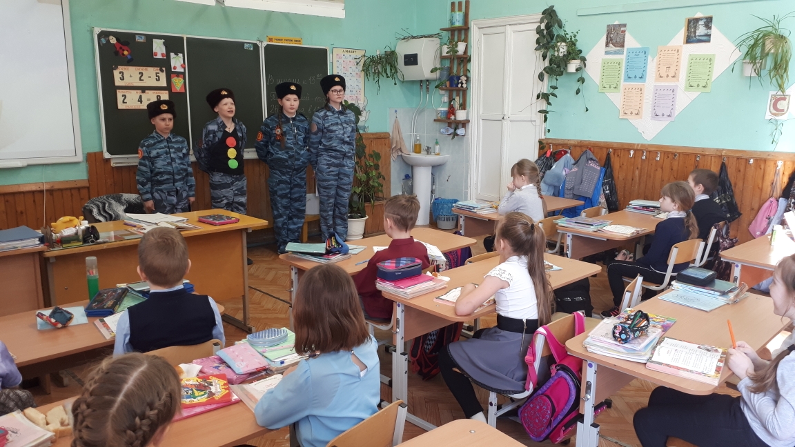 Подростки детского казачьего объединения «Хутор Строгановский» п. Кын выступили перед учащимися начальных классов школы с агитбригадой «Мы – за безопасные каникулы!». Ребята рассказали детям, как важно соблюдать Правила дорожного движения, и в игровой форме повторили значение сигналов светофора и дорожных знаков, напомнили, как правильно передвигаться по загородным дорогам.