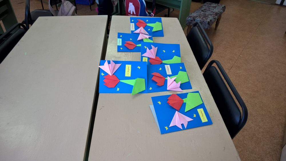Работа по реализации акции закипела сразу в нескольких творческих объединениях на всех этажах Дворца. Опытные педагоги – профессионалы давали мастер – классы по изготовлению цветов их салфеток, чудесных открыток из шелковых лент, аппликаций из цветной бумаги в разных техниках. Шедевры из акварели и восковых мелков, оригинальные рамки и паспарту рождались прямо на глазах. За час участники акции изготовили почти 50 творческих работ, и каждый подарок наполнен теплом и уважением к женщинам, которые стояли и стоят на страже правопорядка в родной Лысьве.