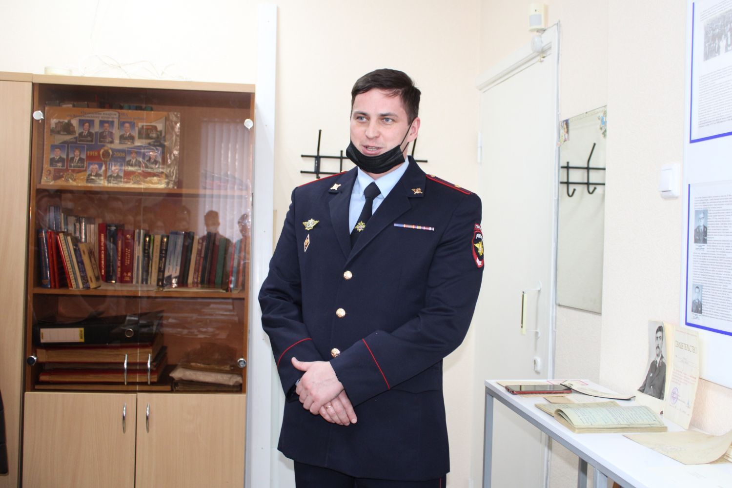 В ходе экскурсии, организованной в комнате истории территориального отдела полиции Лысьвы, председатель Совета ветеранов Алексей Машковцев и ветеран Валентин Ковшевников рассказали учащимся об истории создания и развития отдела внутренних дел Лысьвы, подчеркнув, что первое знамя Лысьвенской милиции хранится в музее МВД в г. Москва.