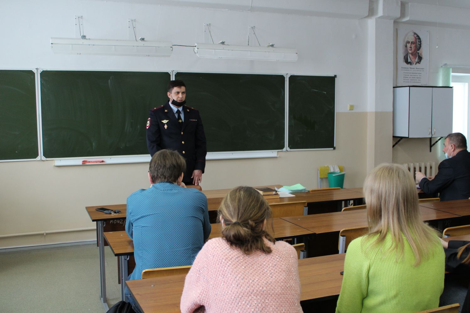 Майор полиции Ильичев рассказал девушкам и юношам, какие мероприятия проводятся по профилактике правонарушений и преступлений среди несовершеннолетних, и обратил внимание на важность взаимопонимания со стражами порядка в студенческой среде.