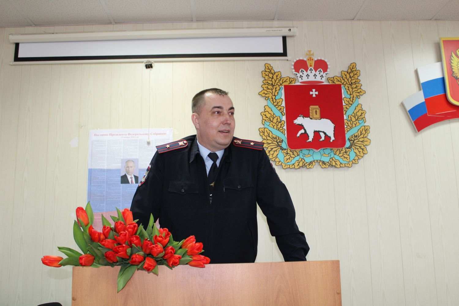 Очаровательных женщин поздравил заместитель начальника полиции по охране общественного порядка отдела МВД России по Лысьвенскому городскому округу, майор полиции Иван Марютин.