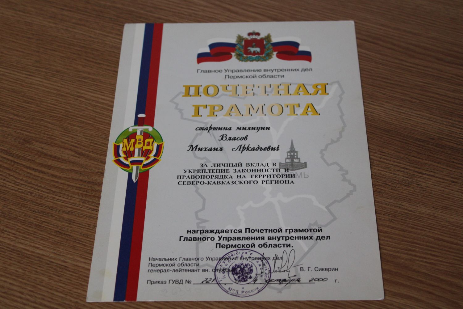 Капитан полиции в отставке Михаил Власов неоднократно был поощрен за образцовое выполнение служебного долга. Он награжден нагрудными знаками «Отличник милиции», «Участник боевых действий», «За отличие в службе ВВ МВД» 2 степени, «За верность долгу», «За службу России», «За службу на Кавказе». Михаил Аркадьевич награжден медалями «За отличие в службе МВД» 3, 2, и 1 степеней.