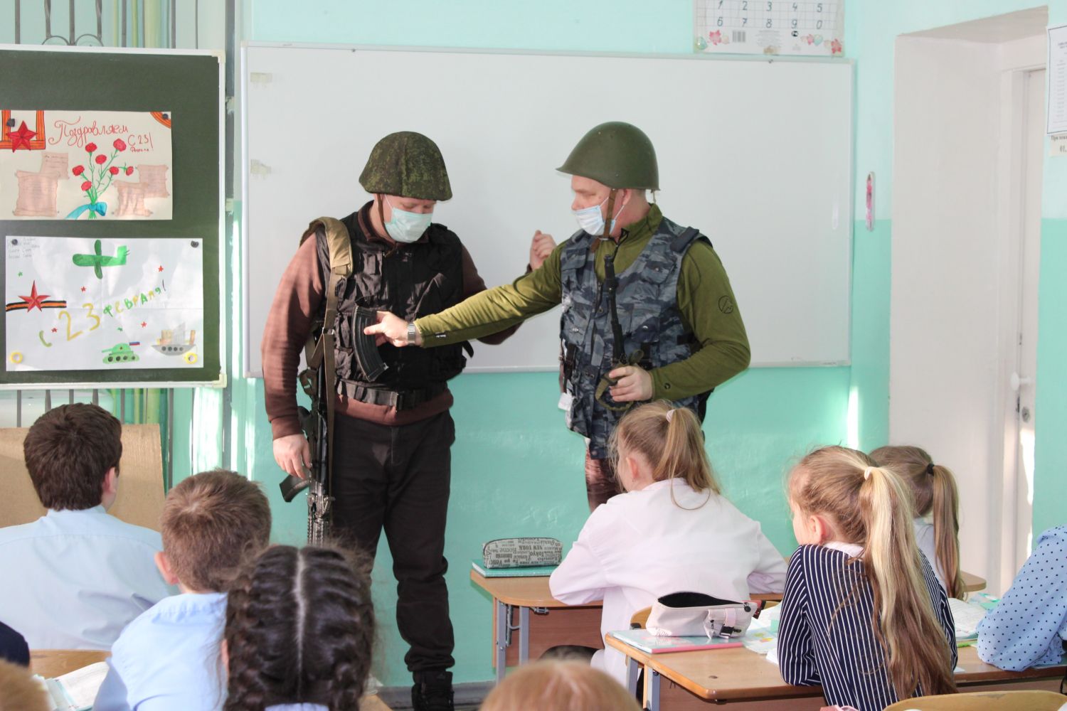 Ветераны ОВД рассказали детям начальной школы и старшеклассникам о своей срочной службе в Вооруженных Силах Российской Федерации и в органах внутренних дел, отметив, что служба полицейских сложна и многогранна.