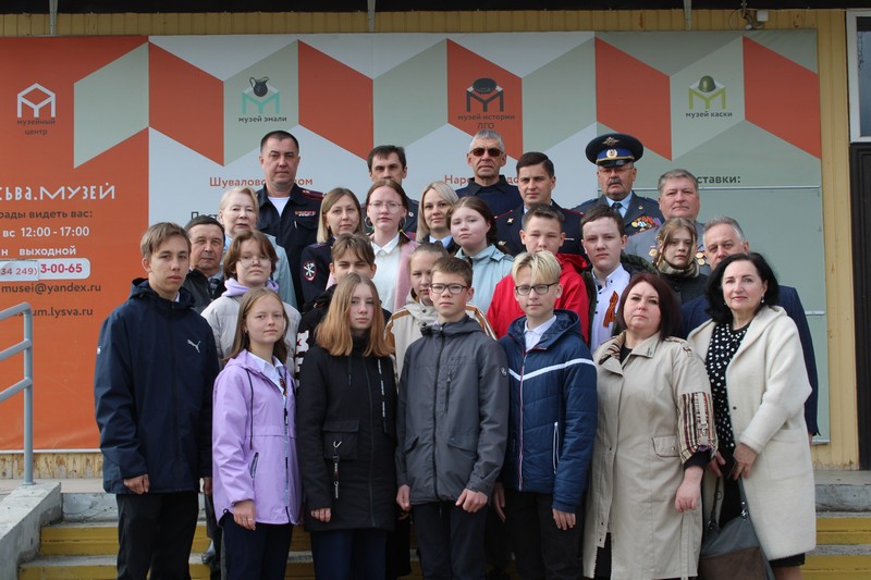 На память об этом важном событии для каждого участника мероприятия, было сделано общее фото, которое будет храниться не только в личных альбомах, но и в архивах Совета ветеранов ОВД и Объединения школьных и студенческих правоохранительных отрядов «ЩИТ» г.Лысьва.