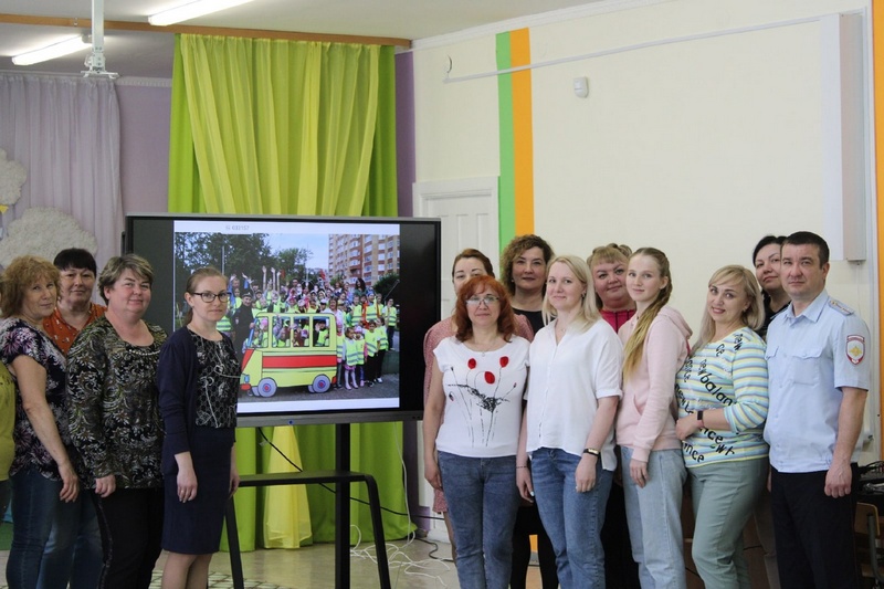 Согласно плану реализации проекта, в мае на базе дошкольного учреждения состоялось обучение педагогического состава технологии «Шагающий автобус», направленной на обучение будущих первоклассников самостоятельному безопасному поведению в дорожной среде, в том числе, планируемому маршруту первоклассников «Дом – школа-дом».