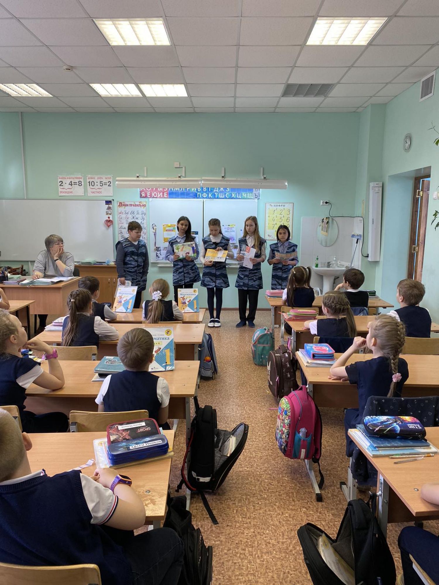 Сотрудники Госавтоинспекции обратились к ребятам правоохранительного отряда «Звезда» с призывом о содействии в проведении акции в образовательном учреждении. В частности, полицейские рекомендовали ребятам выступить перед учащимися начальных классов в конце учебного года, организовать раздачу профилактических листовок на переменах, чтобы всем вместе подготовиться к безопасным летним каникулам. Ребята и Вероника Шахиновна заверили стражей правопорядка, что поддержат инициативу полицейских и блестяще справились с поставленной перед ними задачей.