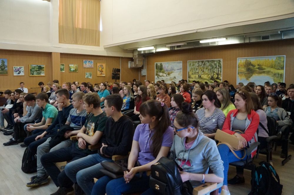 В актовом зале учебного учреждения, где состоялась встреча с инспектором по пропаганде безопасности дорожного движения, собралось 130 студентов колледжа.
