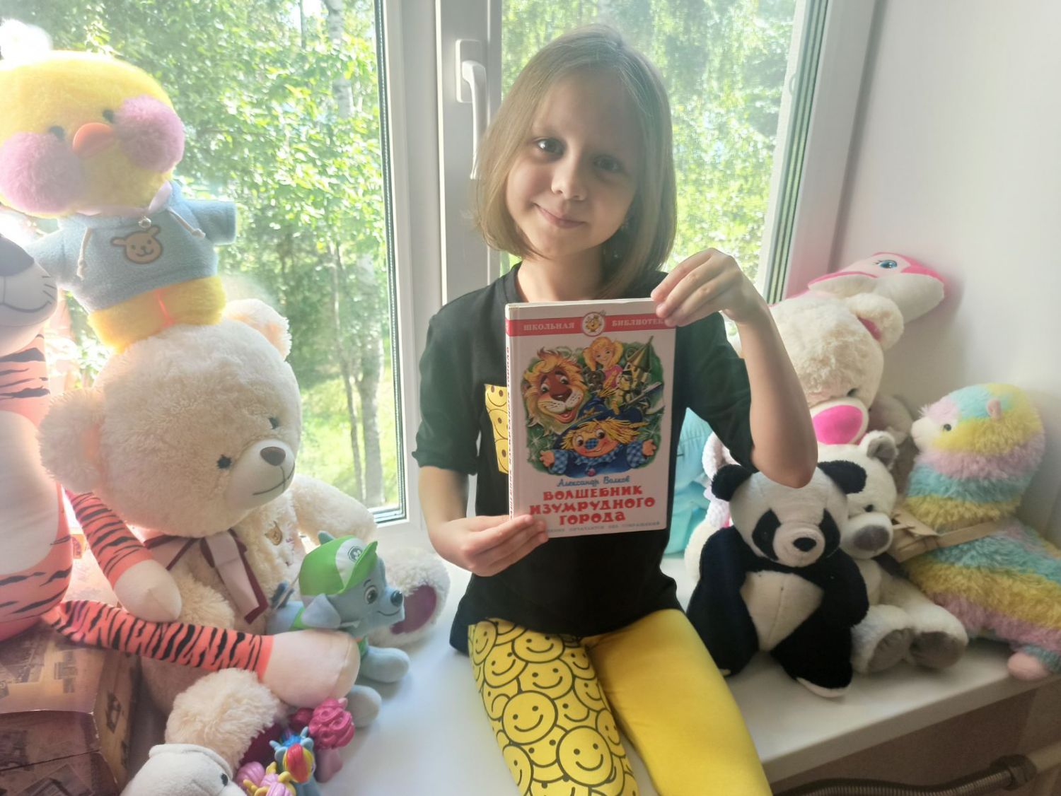 Среди участников акции 9-летняя Мария Потапова. Для участия в акции Мария предоставила фото с замечательной книгой «Волшебник изумрудного города» Александра Волкова.