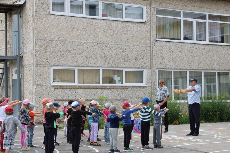 Василий Сергеевич провел с детьми познавательную викторину «Мой веселый звонкий мяч», и рассказал дошколятам о спортивном инвентаре, который можно использовать при проведении зарядки – тогда она станет разнообразной и интересной. Вместе с ребятами полицейский разучил комплекс утренней гимнастики с использованием гантелей.