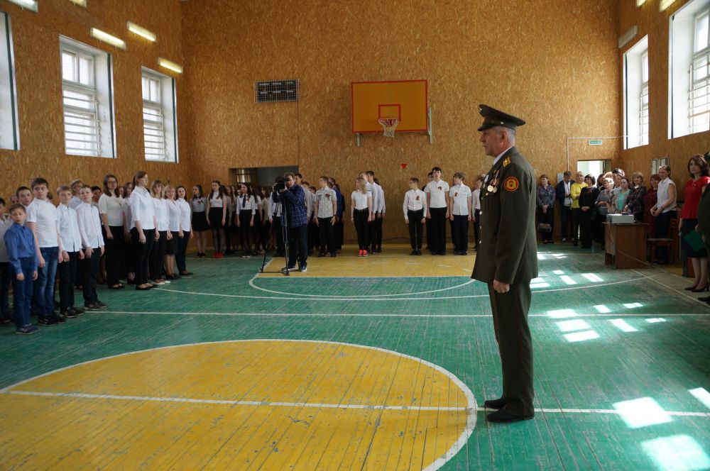 Представители Общественного совета и ветераны ОМВД приняли участие в проведение смотра строя и песни в одной из школ города в преддверии Дня Победы