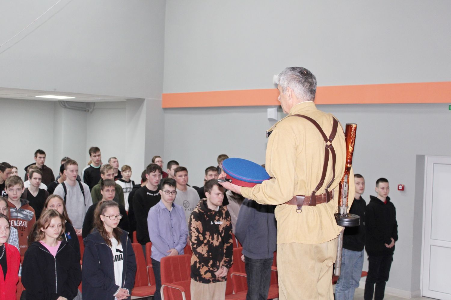 Андрей Николаевич прибыл на Урок мужества в форменном, военном обмундировании периода Великой Отечественной войны. Общественник рассказал школьникам об истории важных дат для нашей страны и подрастающего поколения. Учащиеся узнали, что 3 декабря мы отмечаем День неизвестного солдата. В этот день в 1966-м году у стен Московского Кремля был захоронен прах неизвестного солдата. Мемориал в Александровском саду призван увековечить память, воинскую доблесть и бессмертный подвиг советских и российских воинов, которые погибли в боевых действиях и чьи имена остались неизвестными. Андрей Батуев пояснил детям и подросткам, собравшимся в актовом зале, что не у всех, кто числится погибшими, указано место захоронения. Эти героически павшие бойцы и командиры Красной Армии по-прежнему покоятся на чужой земле. В наше время немногим воинам, чьи останки находят специальные поисковые отряды, удается вернуть имена. Остальные так и остаются «Неизвестными солдатами» той страшной войны. Задачи нынешнего поколения - чтить память о воинах, отдавших жизни ради мира и свободы, и передавать информацию из поколения в поколение, чтобы история нашей страны сохранялась для потомков.