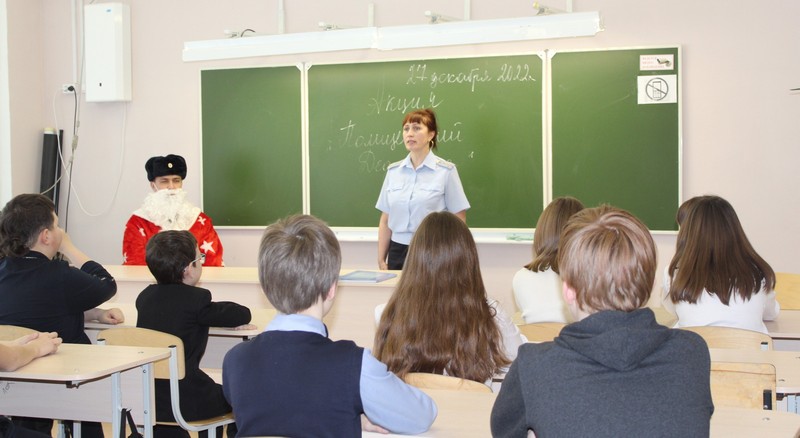 На организованных встречах со школьниками в образовательных учреждениях города полицейские информируют их об основах дорожной безопасности, законопослушного поведения, ответственности за противоправные действия, о правилах безопасности и нахождения в публичных местах. Особое внимание правоохранители уделяют патриотическому воспитанию подрастающего поколения, данные мероприятия проходят в правоохранительных отрядах, куда Полицейский Дед Мороз спешит по заранее составленному расписанию. Дед Мороз в погонах в декабре встретился с ребятами из отрядов «Сириус» школы № 2, «Маяк» школы №7, «СОБР» первого корпуса Лысьвенского политехнического колледжа.