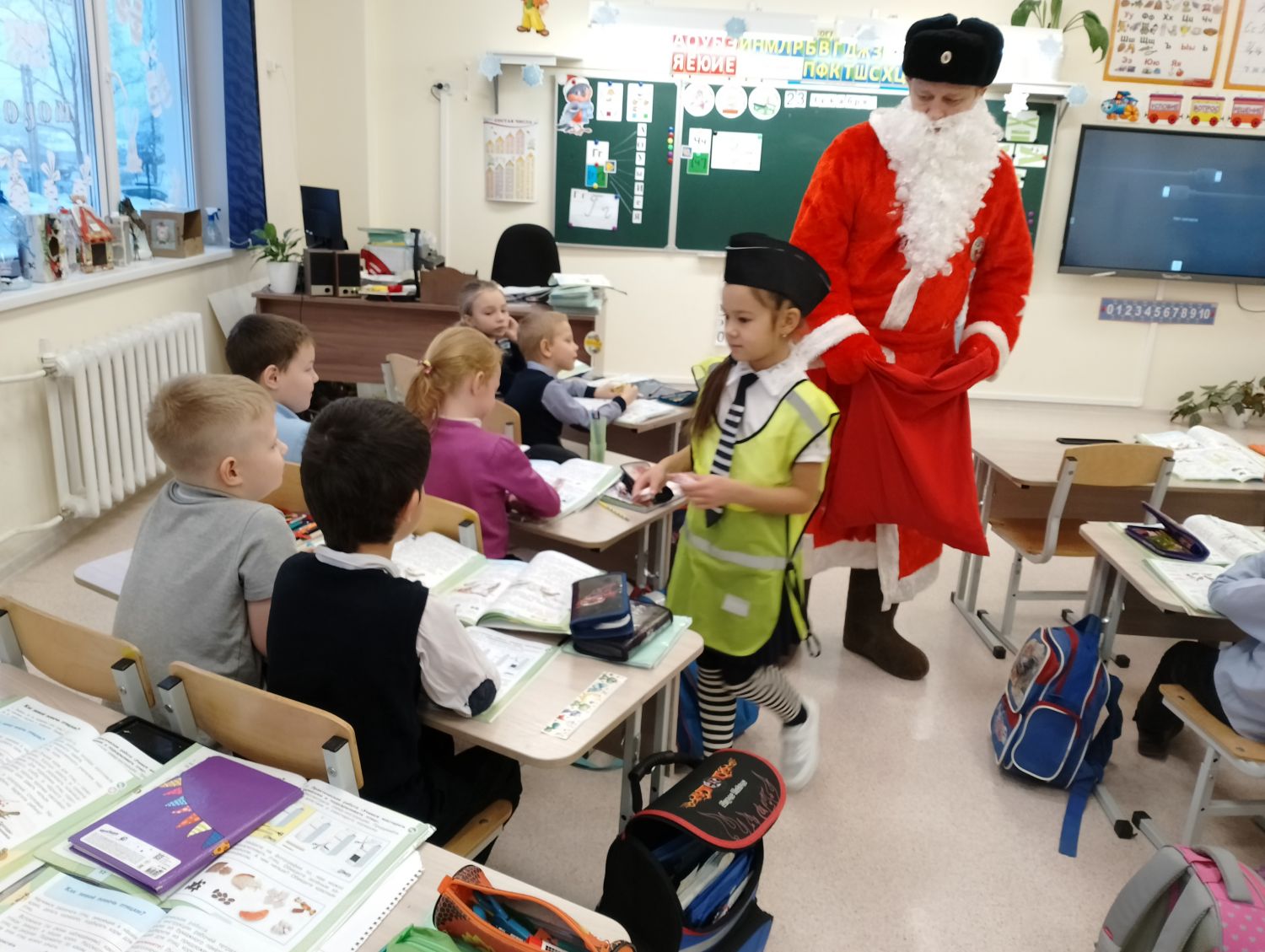 - По инициативе Лысьвенской Госавтоинспекции совместно с отрядом ЮИД «Зебра лицея «ВЕКТОРиЯ»», работой которого руководит Елена Александровна Захарова, организовано и проведено профилактическое мероприятия «Зима прекрасна, когда безопасна!». Целью данного мероприятия является профилактика детского дорожно-транспортного травматизма в период зимних школьных каникул. В гости к ребятам пришел Полицейский Дед Мороз, в сопровождении сказочных персонажей, они рассказали ребятам о том, как важно соблюдать правила дорожного движения на зимней дороге. Ученики начальной школы в игровой форме повторили ПДД и рассказали, что они правильно ведут себя на дорогах, пешеходных переходах и в общественном транспорте, - рассказал Денис Михайлович.