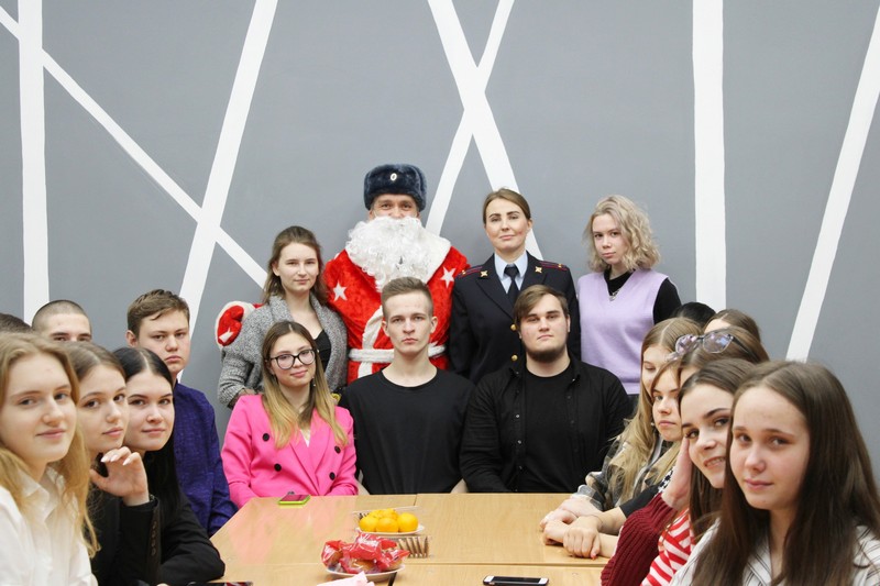 В завершении встречи ветераны ОВД и полицейские пожелали учащимся и педагогам безопасных новогодних праздников. В волшебном мешке Полицейского Деда Мороза для каждого студента нашлись вкусные новогодние угощения, которые оказались на чайном столе, за которым звучали пожелания здоровья ии счастья, новогодние песни и стихи.