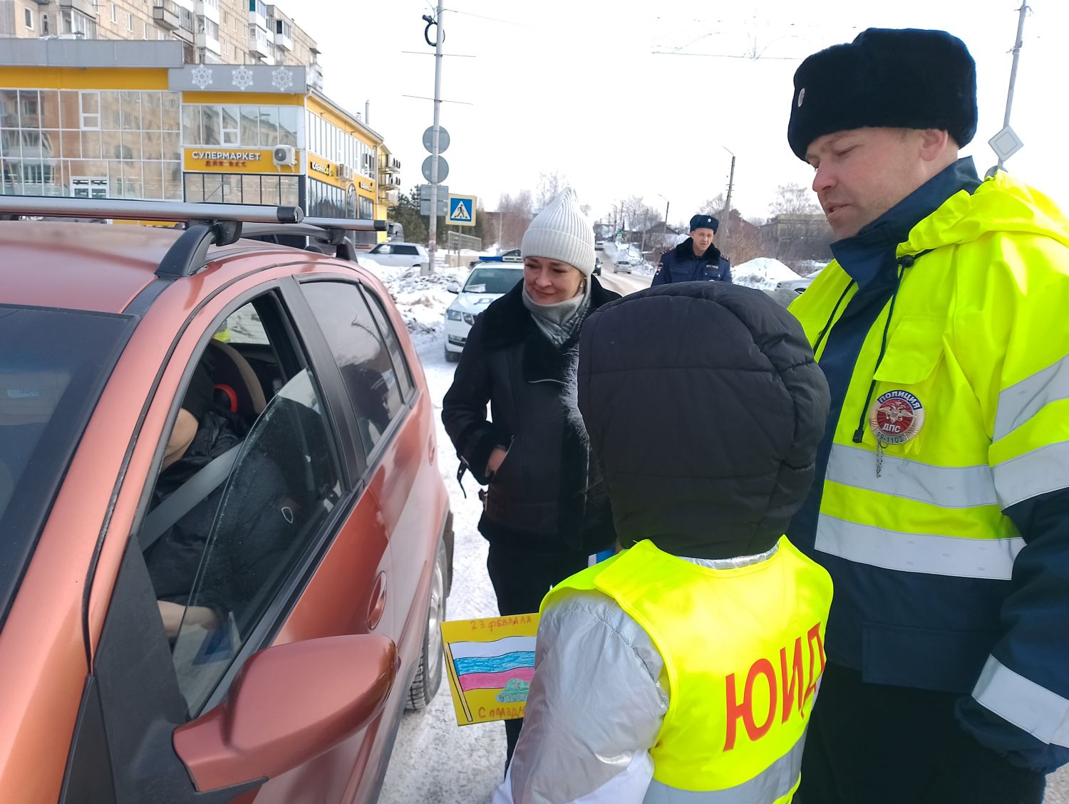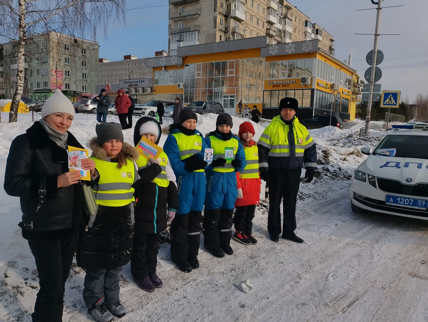 Профилактическая акция прошла в несколько этапов. Участники проекта «Золотой ключик безопасности» - педагоги и воспитанники детского сада № 26, изготовили красивые, яркие, тематические открытки к праздничной дате. Воспитатели и специалисты дошкольного образовательного учреждения обратились к водителям в письменной форме с призывом неукоснительного соблюдения ПДД. Затем под руководством сотрудников отделения Госавтоинспекции отдела МВД России по Лысьвенскому городскому округу на улицы города вышли ребята из отряда ЮИД «Зебра», работой которого в лицее «ВЕКТОРиЯ» руководит педагог Елена Александровна Захарова, а так же девочки и мальчики из отряда ЮИД «Главная дорога» школы № 7, под руководством Анастасии Германовны Чигвинцевой. В ходе проведения акции участники, под руководством сотрудников ДПС ГИБДД территориального отдела полиции Лысьвы, раздавали праздничные, профилактические открытки водителям транспортных средств, чтобы призвать их к неукоснительному соблюдению правил дорожного движения.