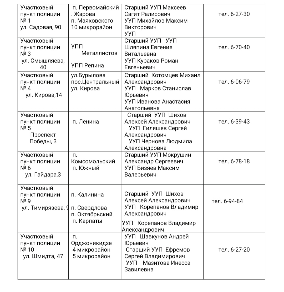 Уважаемые жители Лысьвенского городского округа, полиция информирует вас об обновленном списке участковых уполномоченных полиции отдела УУП и ПДН отдела МВД России по Лысьвенскому городскому округу