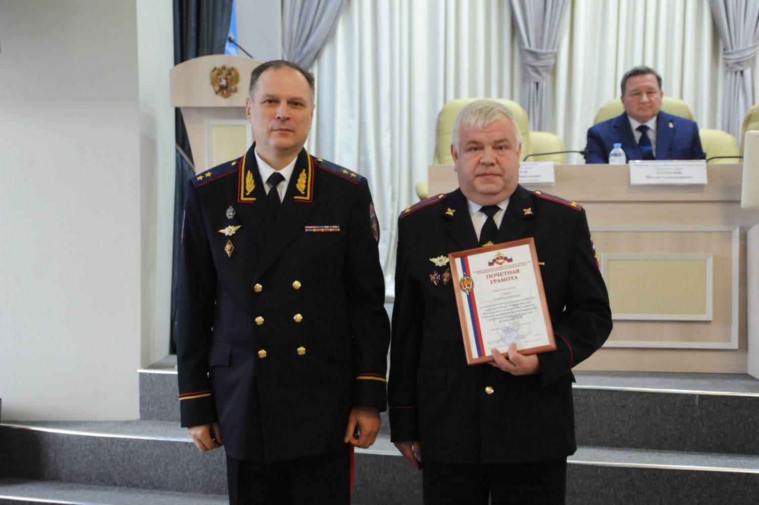 Генерал-лейтенант полиции Александр Щеглов вручил отличившимся сотрудникам ведомственные медали, нагрудные знаки, почетные грамоты и благодарности. Среди награжденных начальник службы участковых отдела МВД России по Лысьвенскому городскому округу подполковник полиции Сергей Старцев.
