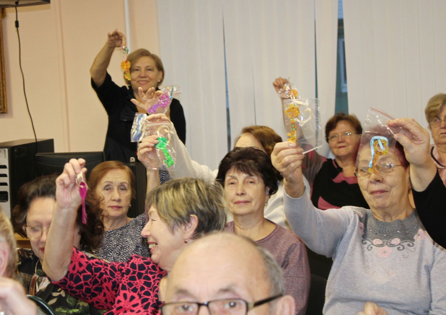 В ходе встречи всем участникам мероприятия общественница вручила ключики безопасности, изготовленные из светоотражающих материалов. Такие важные сувениры для безопасности в дорожной среде лысьвенцев старшего поколения в зимний период изготовили дети и воспитатели из детского сада № 26 – участники совместного проекта с полицией «Золотой ключик безопасности».