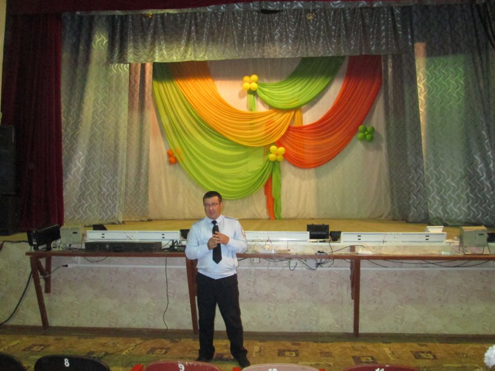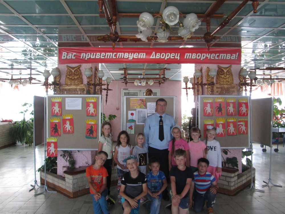 Пять отрядов детского лагеря собрались вместе в концертном зале дворца, чтобы в игровой форме с полицейскими повторить Правила дорожного движения, ответить на вопросы викторины, и отгадать каверзные загадки стражей порядка.