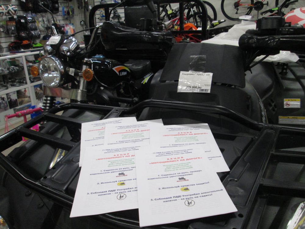 Так же к акции полицейские призвали и торговые центры, осуществляющие продажу мотоциклов, скутеров и квадроциклов, где при покупке данного вида транспорта покупателям будет вручаться профилактическая листовка.