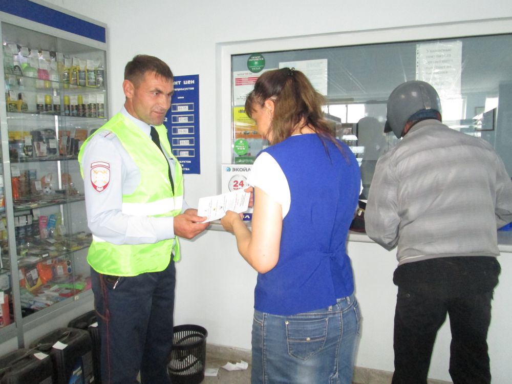 Стражи порядка обратились и к сотрудникам заправочных станций города, где при покупке бензина владельцам мотоциклов к чеку о продаже вручается агитационная листовка «Мотоциклист на дороге».