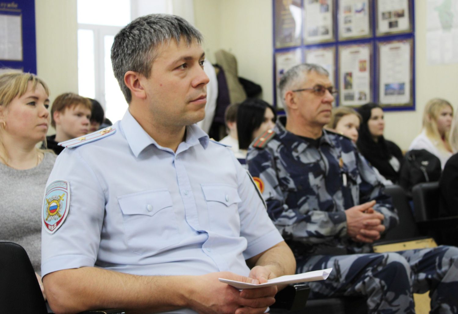 Госавтоинспекторы старший лейтенант полиции Вадим Марков и пропагандист младший лейтенант полиции Мария Мехрякова повторили со студентами основные правила мер личной безопасности в дорожной среде, проинформировали о статистике ДТП за период прошлого года, рассказали о специфике службы в Госавтоинспекции.