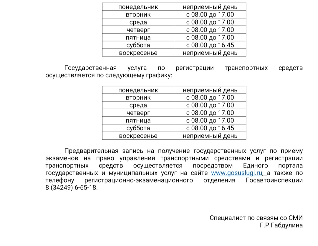 РЭО Госавтоинспекции отдела МВД России по Лысьвенскому городскому округу информирует граждан о графике работы