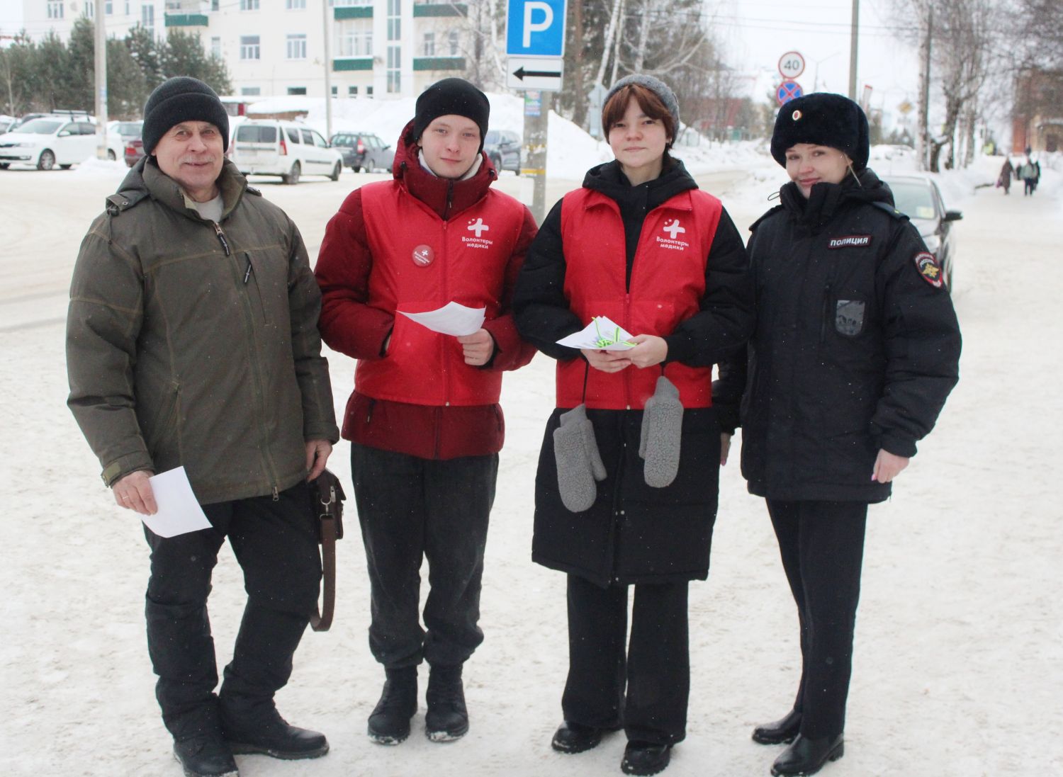В Лысьве стражи дорог при поддержке юных инспекторов движения и волонтеров медицинского колледжа организовали акцию «Фликер – друг пешехода»
