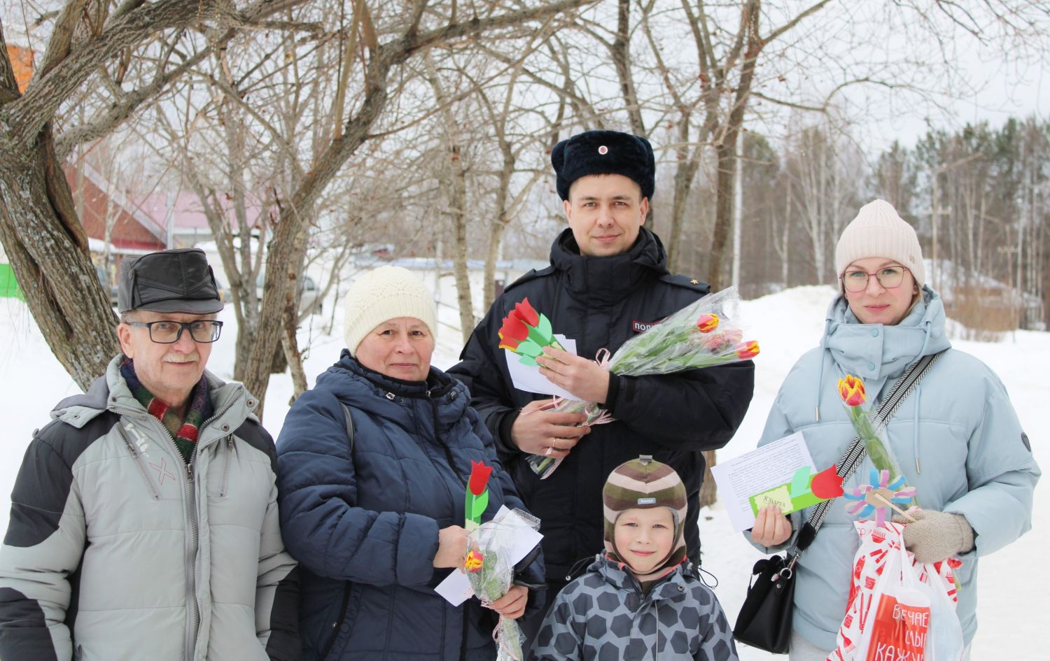 В рамках акции Министерства внутренних дел России «8 Марта в каждый дом» участковые уполномоченные полиции отдела МВД России по Лысьвенскому городскому округу на участковых пунктах и улицах города организовали поздравление жительниц родного города с предстоящим весенним праздником. Организаторы приготовили яркие тюльпаны, поздравительные открытки, сладкие сувениры, чтобы вручить их горожанкам.