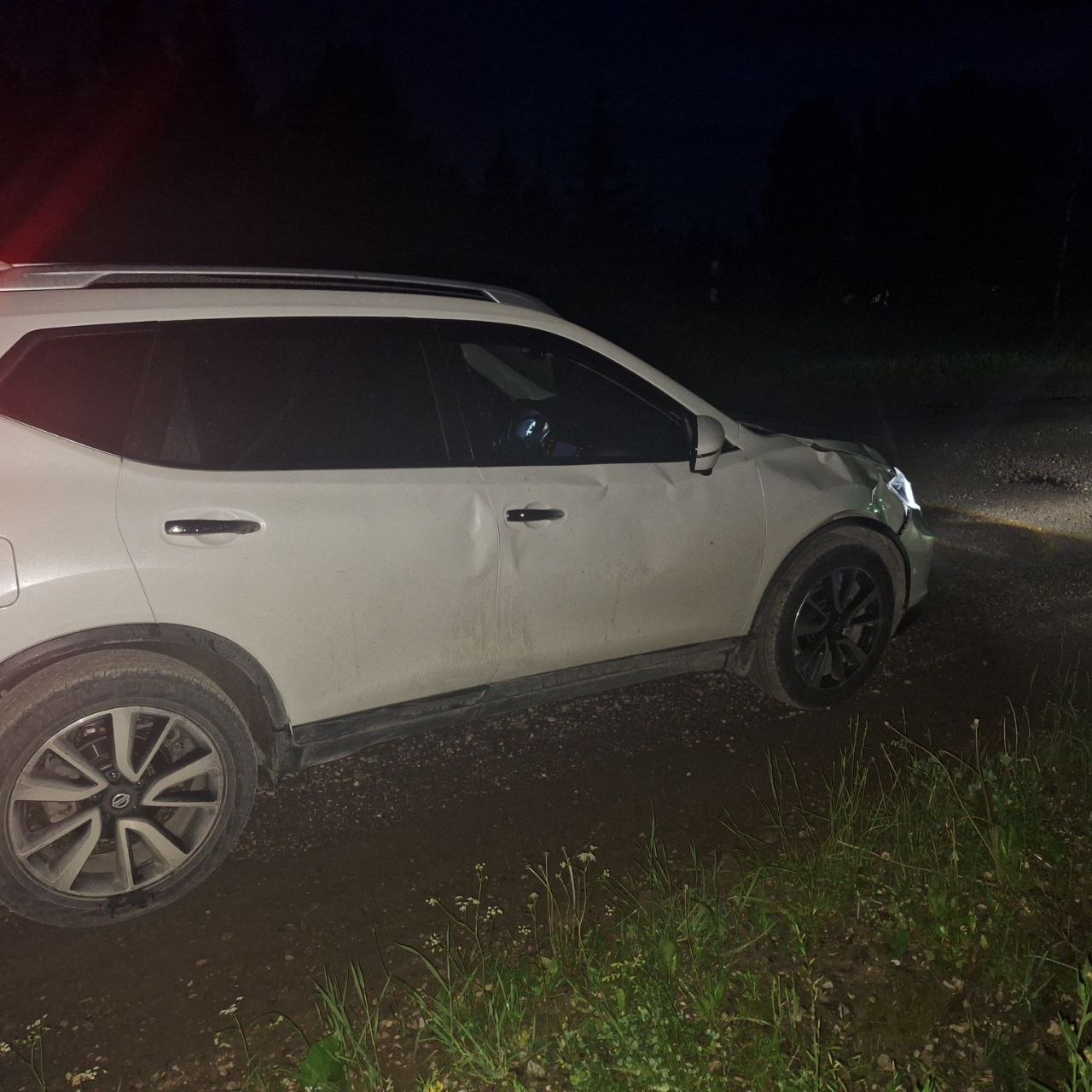 В вечернее время, этого же дня, по автодороге Лысьва-Кормовище-Кын, двигался автомобиль Nissan X-Trail, под управлением водителя 1973 года рождения, который в районе 53 км. допустил наезд на животного (лося), в результате чего автомобиль получил механические повреждения.