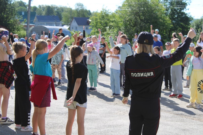 В Лысьве стражи дорог и инспекторы отдела по делам несовершеннолетних встретились с ребятами на профилактическом мероприятии «Зарядка со стражем порядка»