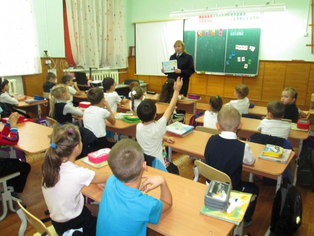 Инспекторы отдела по делам с несовершеннолетними разобрали с детьми ситуации, которые наиболее часто встречаются в жизни, в том числе, напомнили школьникам о запрете употребления никотина и алкоголя, наркотических веществ.